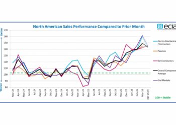 Sales confidence in the electronic components industry surged in March 2026, with the latest ECIA Industry Pulse survey reporting the ...