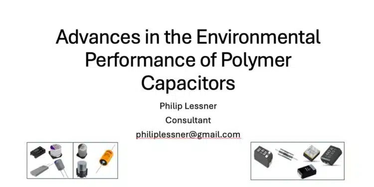 The paper “Advances in the Environmental Performance of Polymer Capacitors” was presented by Philip Lessner Consultant, South Carolina, USA at the 5th PCNS Passive Components Networking Symposium 9-12th September 2025, Seville, Spain as Keynote paper III.