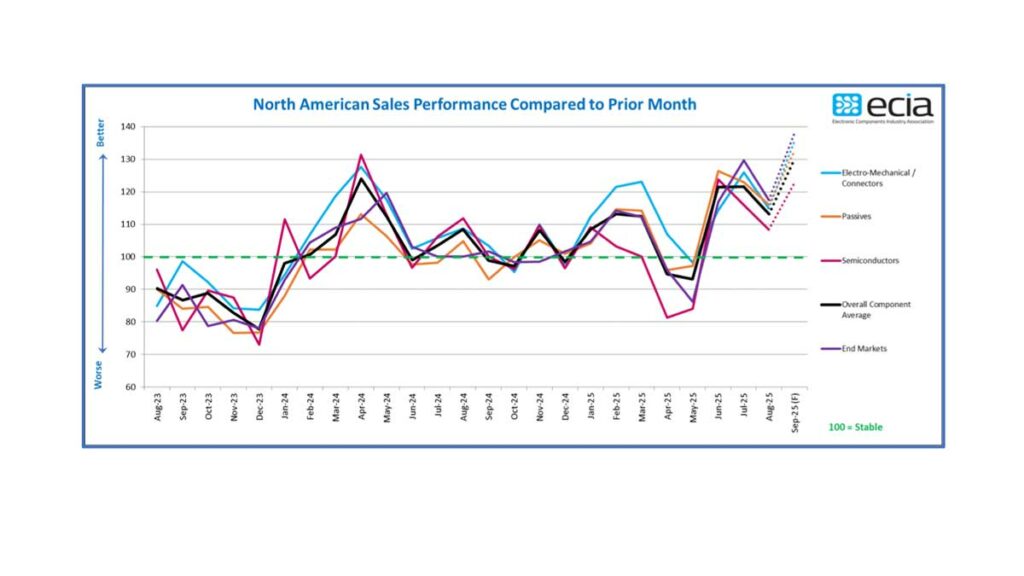 Component industry pulse ECIA survey results for August sales sentiment decline from July but remain solid; quarterly results show optimism through end of 2025.