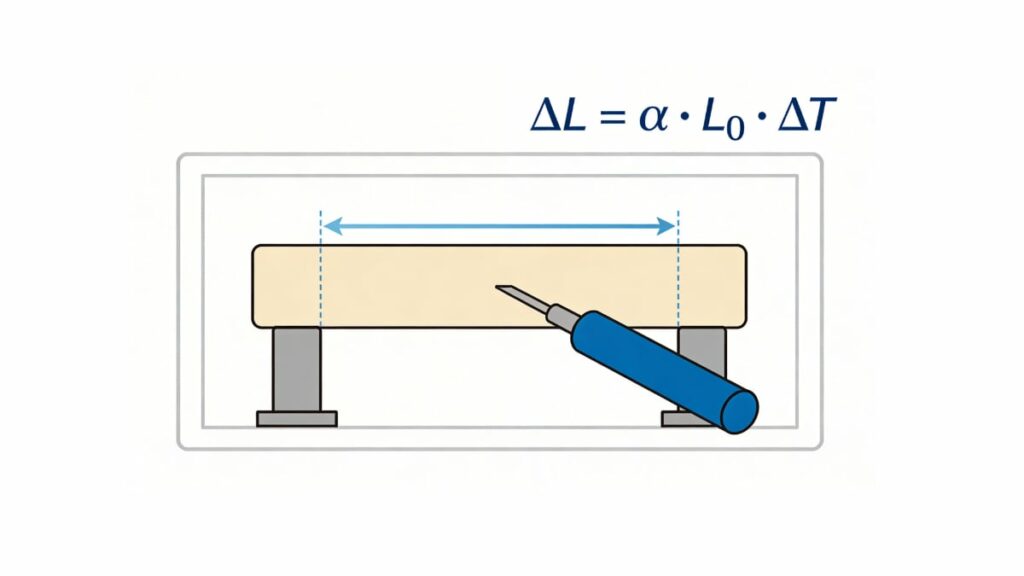 α=ΔLL0ΔT\alpha = \dfrac{\Delta L}{L_{0} \, \Delta T}