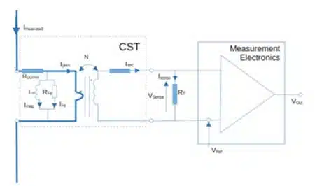 Flowing primary current slightly differs from measured current value, as the core of current sense transformers needs to be magnetized by magnetizing current. Hysteresis losses (IFe) are typically negligible for CSTs. The magnetizing current can be identified from basic parameters as a source of amplitude error.