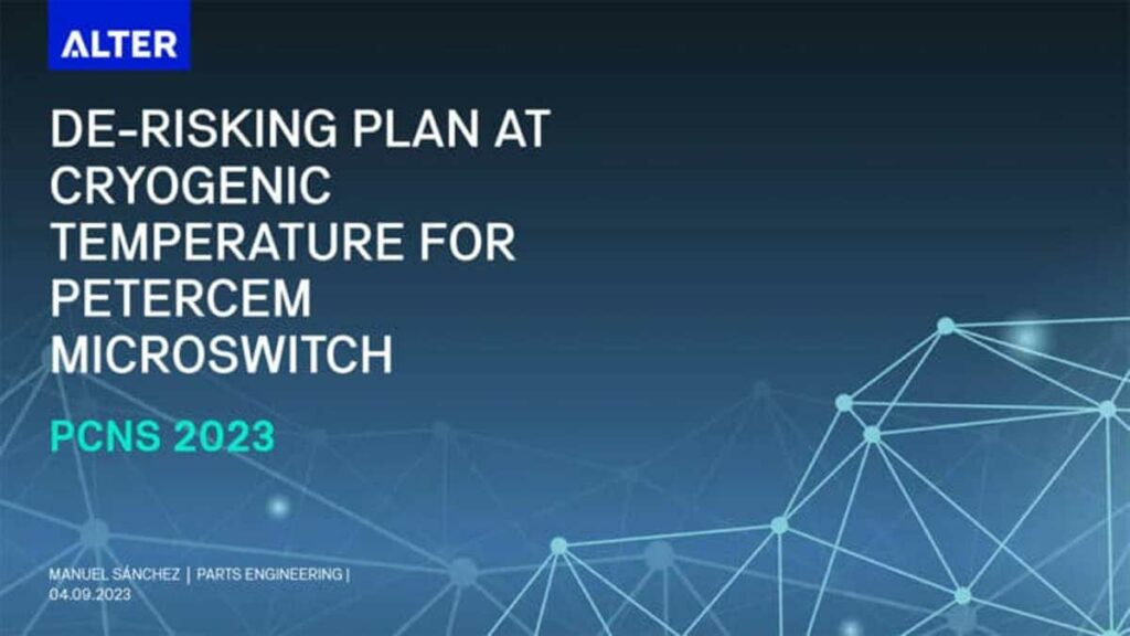For this reason, a de-risking plan, consisting of a functional verification at 40K, has been proposed by ALTER with review and agreement of SENER and ESA in order to test some samples and get some de-risking results that should give some confidence before submitting this part to a proper qualification according to the missions’ requirements. The di-risking test results should confirm that the Petercem microswitch is a valuable alternative to Honeywell microswitch.