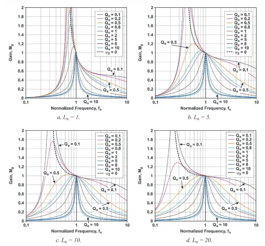 - The article emphasizes the importance of the L_m/L_r ratio in shaping gain curves and the role of effective quality factor Q_e.