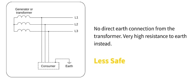 - IT – the source is isolated from earth or connected through a high impedance, while exposed conductive parts are earthed, typically via a local or common earth electrode