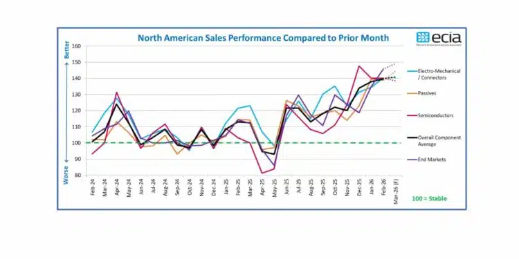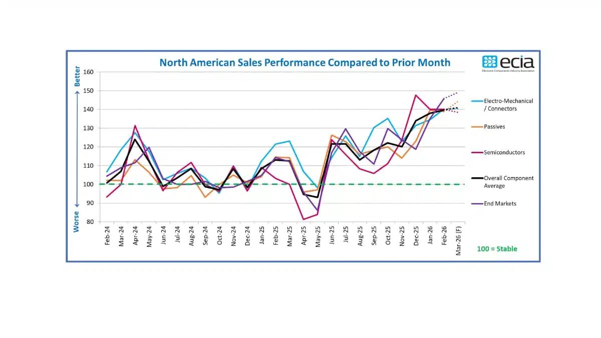 This article is based on information from the Electronic Components Industry Association (ECIA) Industry Pulse and Electronic Component Sales Trends (ECST) survey summary for February and Q1 2026, authored by ECIA Chief Analyst Dale Ford.