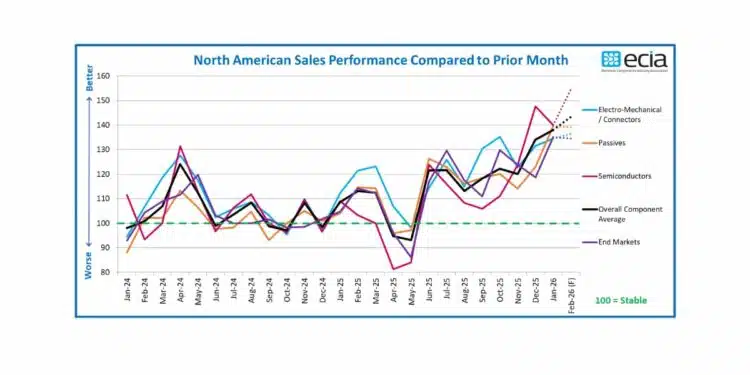 ECIA’s January 2026 survey signals the strongest sales sentiment for the electronic components industry in more than four and a half years. The January 2026 results show broad-based confidence across product categories, end-markets, and all major supply chain channels as the industry enters the 2026.