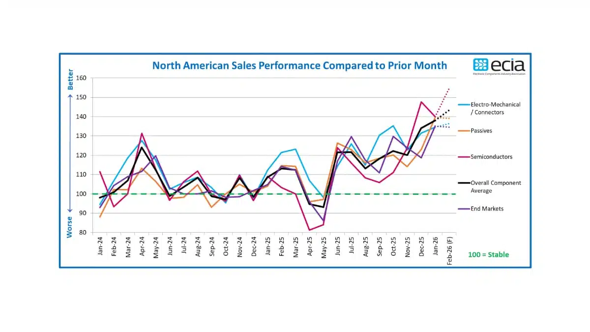 ECIA’s January 2026 survey signals the strongest sales sentiment for the electronic components industry in more than four and a half years. The January 2026 results show broad-based confidence across product categories, end-markets, and all major supply chain channels as the industry enters the 2026.