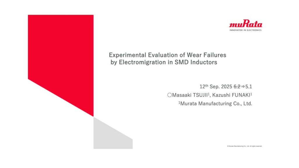 The paper “Experimental Evaluation of Wear Failures in SMD Inductors” was presented by Masaaki Tsujii, Murata Manufacturing Co., Ltd., Kyoto, Japan at the 5th PCNS Passive Components Networking Symposium 9-12th September 2025, Seville, Spain as paper No. 6.2.
