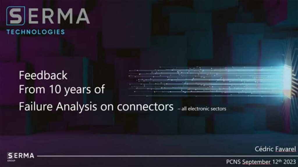 In this paper SERMA TECHNOLOGIES presents failure statistics of connectors from field return analyzed during the last 10 years. The article analyze main defects encountered during failure analysis and associated mechanisms / root causes (if identified).