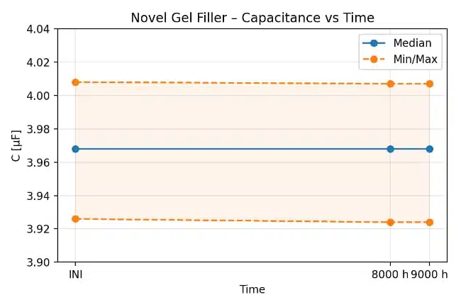 For field applications, this suggests that HYDRA gel-filled capacitors are suitable for demanding humidity and temperature conditions, provided other design constraints (voltage, harmonics, switching, etc.) are respected.