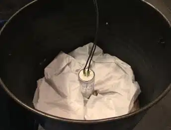 The thermocouple is located inside the capacitor close to the hot spot and measures internal test capacitor temperature. The better the thermal conductivity of the filler, the more heat will be dissipated, optimizing capacitor’s life. The lower the internal temperature, the better.