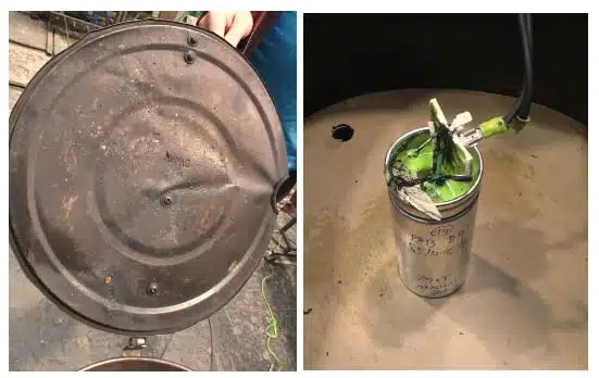 Destruction tests on motor capacitors without safety disconnectors demonstrate that oil-filled units scatter droplets of oil around the test area after explosive disruption, while gel-filled samples leave the surroundings essentially clean. For system designers, this can reduce secondary pollution risk in case of misuse, internal fault or mechanical damage.