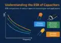 Different capacitor options are available each with specific temperature and voltage behaviours. Low ESR minimises ripple and affects the stability of the feedback control loop.
