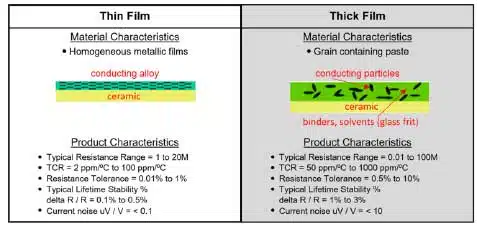We shall present in the article the following resistor types, differentiated by constructional material or specific design such as thin film, foil, thick film and carbon resistors.