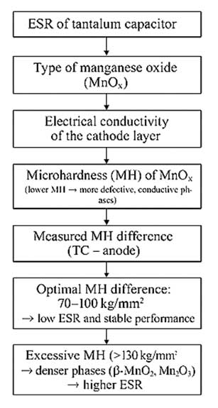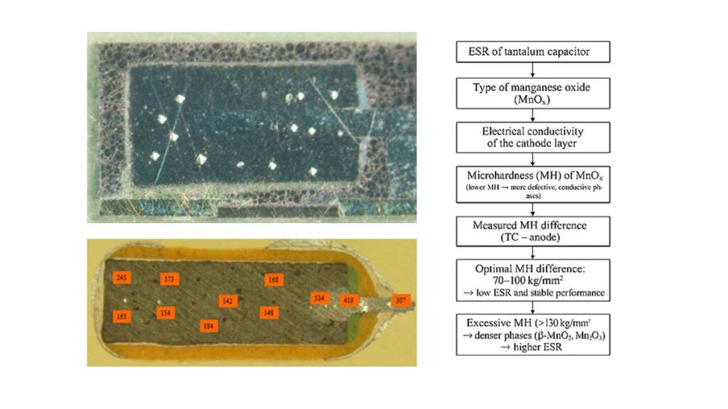 - MH measurement on capacitor cross-sections thus provides a universal, design-independent tool for monitoring the MnOₓ deposition process and for controlling impregnation and drying regimes during the qualification of new tantalum capacitor designs.