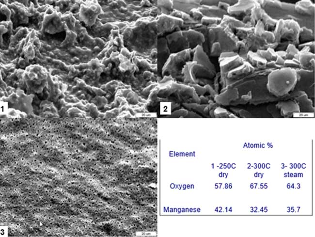 | Sample | Number of dips | Relative Mn concentration | T°C, dry/steam | Average HV (kg/mm²) | Mn oxide contribution |