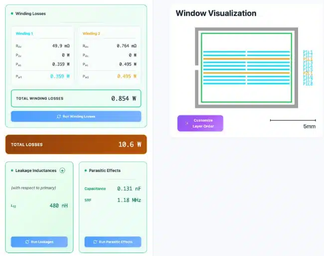 - For copper losses, include skin and proximity effects, which are especially pronounced in planar conductors and multilayer PCB structures.