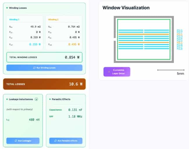 - Specialized design platforms for planar magnetics can automate copper and core loss calculation for given waveforms, geometries and materials, then feed these losses into internal FEM models.