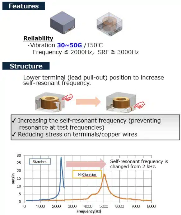 - Inductor positions where mechanical vibration and heat shock are critical, such as embedded drives near motors