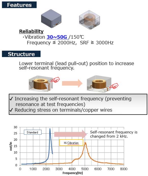 - Inductor positions where mechanical vibration and heat shock are critical, such as embedded drives near motors