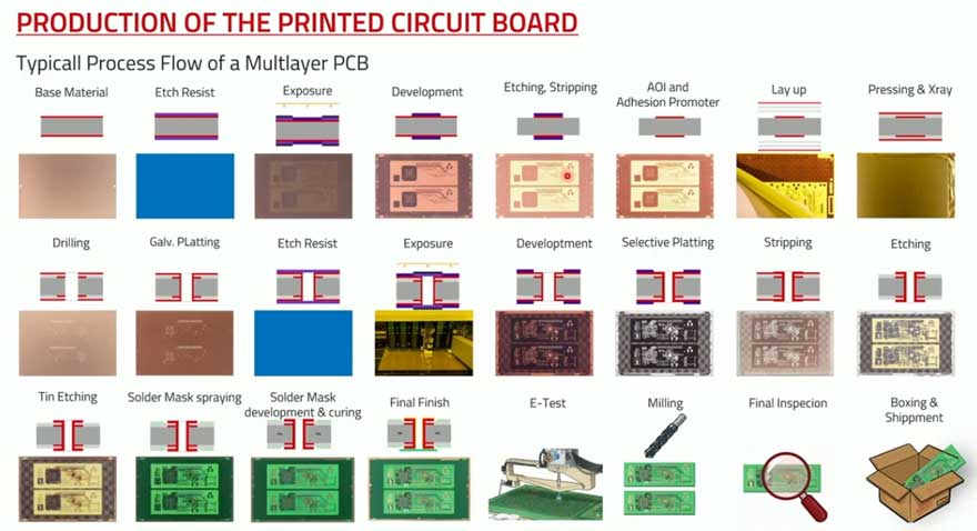 PCB manufacturing is a multi‑stage process where each step introduces potential variation and failure mechanisms. Even a “simplified” process flow already involves numerous chemical, mechanical, and optical operations that must be controlled within tight tolerances to guarantee consistent quality.