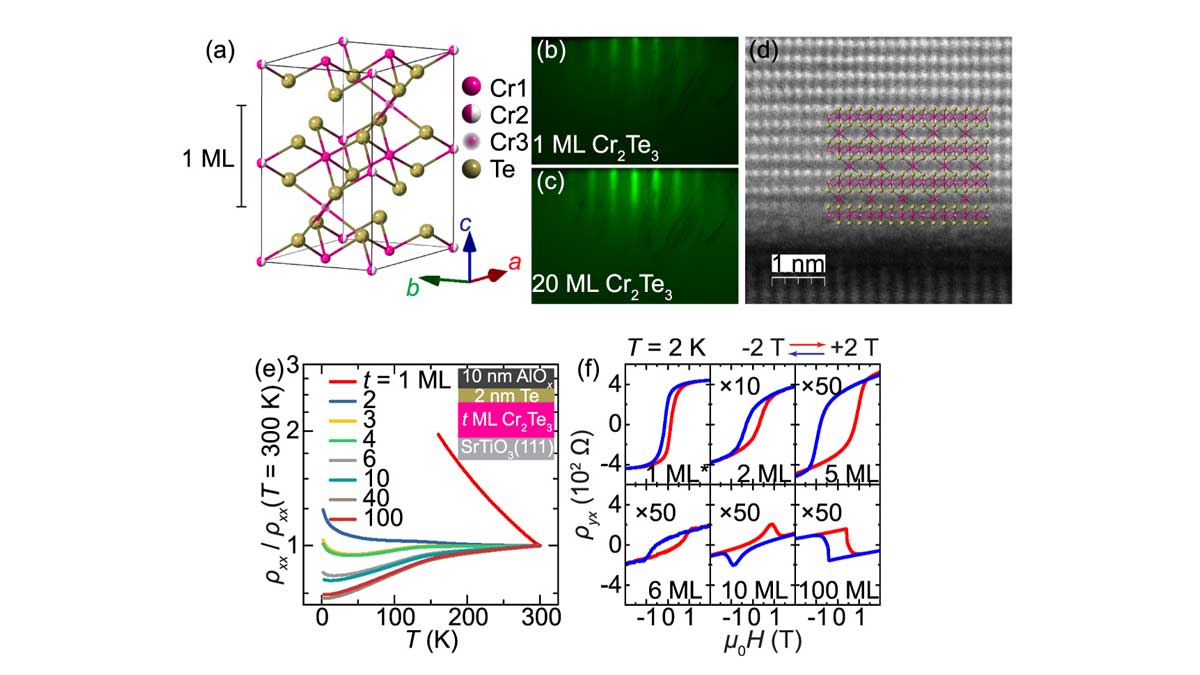 The team synthesized Cr₂Te₃ films using MBE under Te-rich conditions, ensuring high crystallinity and atomically sharp interfaces. Structural analysis via RHEED, XRD, HRSTEM, and Raman spectroscopy confirmed uniformity and phase purity. Electrical transport measurements revealed metallic behavior in thick films and insulating tendencies in ultrathin layers, with anomalous Hall effect (AHE) signatures confirming ferromagnetism down to a single monolayer.