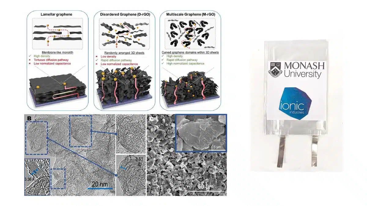 The breakthrough lies in the development of multiscale reduced graphene oxide (M-rGO), synthesized from natural graphite, an abundant Australian resource. Through a rapid thermal annealing process, the researchers crafted a highly curved graphene structure with precise pathways for ion movement, achieving a rare combination of high energy density and high power density.