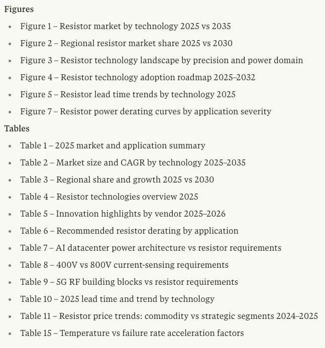 Unlike generic resistor reports that stop at high‑level market sizing, the 2026 Annual Resistor Dossier combines: