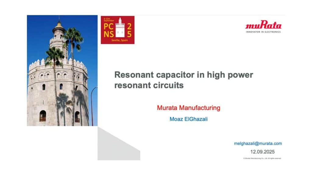 The paper “Resonant Capacitors in High-Power Resonant Circuits” was presented by Moaz ElGhazali, Murata Electronics Europe B.V. Germany, Nürnberg, Germany at the 5th PCNS Passive Components Networking Symposium 9-12th September 2025, Seville, Spain as paper No. 5.4.