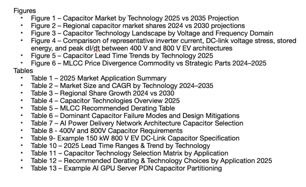 Unlike broad passive-component reports that focus on high-level market sizing, the 2025 Annual Capacitor Technology Dossier combines: