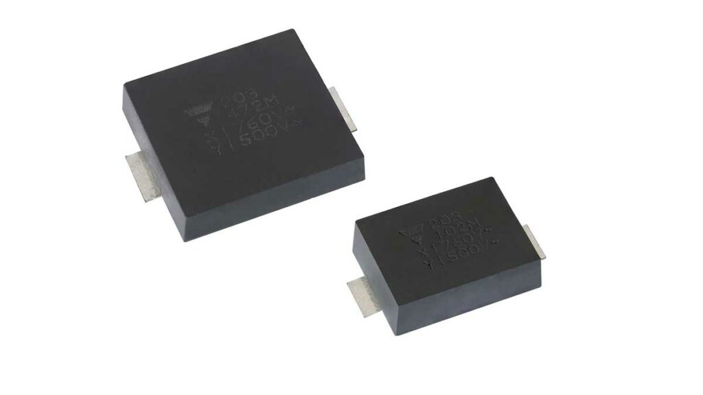 Vishay Intertechnology, Inc. introduced a new series of Automotive Grade AC line rated ceramic disc safety capacitors that are the industry’s first with a Y1 rating to be offered in a surface-mount casing.