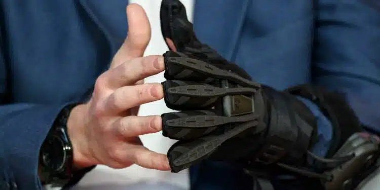 The system uses electric motors and cable-driven mechanisms to actively close the fingers and, unlike many existing solutions, to actively open them as well. This allows controlled support of gripping movements, based on the functional principle of tendons.